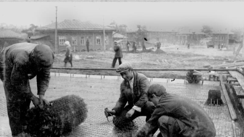 Потом, когда утверждается проект, государство даёт городу недостающую сумму. Со всех концов Советского Союза прибывают специалисты, начинается стройка. Стройка была действительно народной: после работы горожане приходят добровольно помогать строителям. Те, у кого есть навыки, помогают специалистам, а у кого навыков нет, просто убирают территорию, разгружают гравий, переносят тяжести…