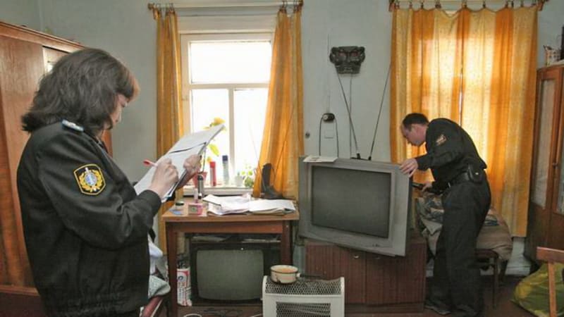На этот раз в дом попадаем беспрепятственно: Баранов открывает дверь, не уточняя, кто за ней. Оказываемся в прихожей-кухне, где из мебели находятся старый посудный шкаф, печка и обеденный стол. Во второй и последней комнате – стол, платяной шкаф, кровать, телевизор и груда одежды, сваленной на полу. Анжела Алексеева намётанным взглядом определяет, что для приставов интерес представляет только телевизор – его можно реализовать для частичного погашения долга. Составляется акт описи ареста, по которому должник превращается в ответственного хранителя телевизора. Теперь если вещь пропадёт из его квартиры, Баранова ждёт уголовная ответственность по статье 312 УК – «растрата или отчуждение арестованного имущества». В течение десяти дней должник может найти документы, подтверждающие, что вещь принадлежит не ему, и тогда с неё будет снят арест. «Арест также может быть снят в случае полного погашения долга», – напоминает Анжела Алексеева Баранову, хотя понятно, что вряд ли у него есть возможность быстро найти 140 тыс. рублей.