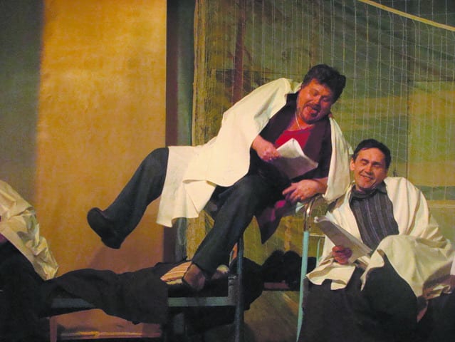 В Качуге все знают друг друга, все как родственники. А уж этих людей и по службе, и по быту, и по театру знают от головы до пят. Приехав на Лену, первое, что сделал Кирюнин, одел будущих героев спектакля в простыни – действие-то происходит в вытрезвителе. Их сфотографировали, и появился у Дома культуры рекламный баннер. Все с доброй ухмылкой разглядывали до боли знакомые лица в непривычных одеяниях и незнакомой обстановке. Уже в этот момент успех будущему спектаклю был обеспечен.