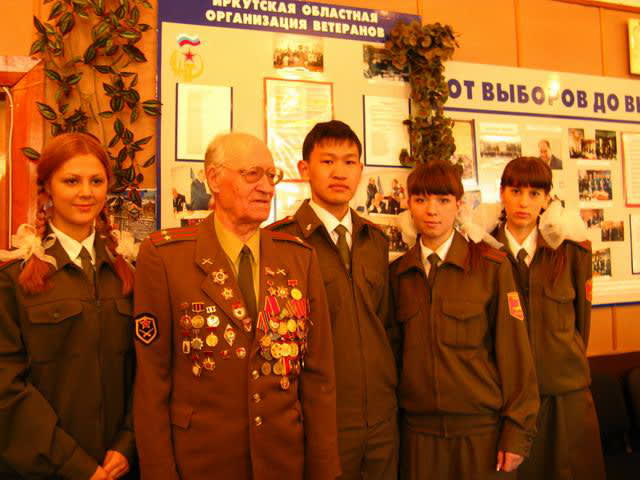 В этот раз Евгений Леонидович Голосницкий прибыл, как принято говорить в армии, в областной совет ветеранов в парадном мундире. По-военному подтянутый, не по годам моложавый – и не поверишь, что в конце мая будет отмечать 85 лет. Полная грудь орденов и медалей. Легко представить, как загораются глаза мальчишек и девчонок, когда он приходит в школы Шелехова проводить уроки мужества или в дни воинской славы встречается с молодёжью, с призывниками. Гвардии подполковник в отставке весело смеётся: «Да такие встречи только молодят и придают сил!».
