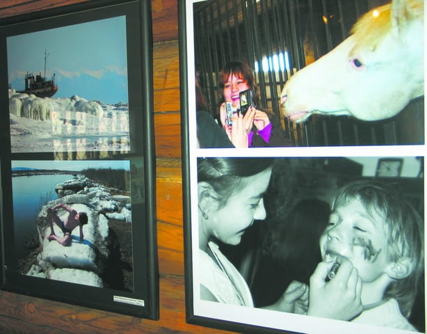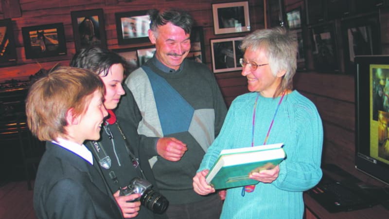 На снимках автора: Марина Свинина и фотомастер Иван Гуров вручают участникам памятные подарки; экспонаты выставки