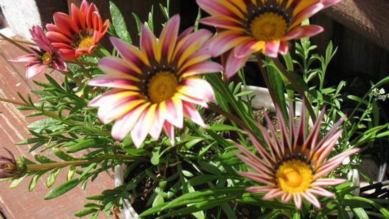Растения плохо переносят излишнюю влагу, но очень устойчивы к жаре и засухе, поэтому незаменимы для южных откосов, южных балконов, а также для солнечных клумб, бордюров или горки. Цветёт гацания обильно и длительно – с конца июня до заморозков. Родина её – Южная Африка, а как украшает она сибирские клумбы! Это видно и на предлагаемой фотографии.