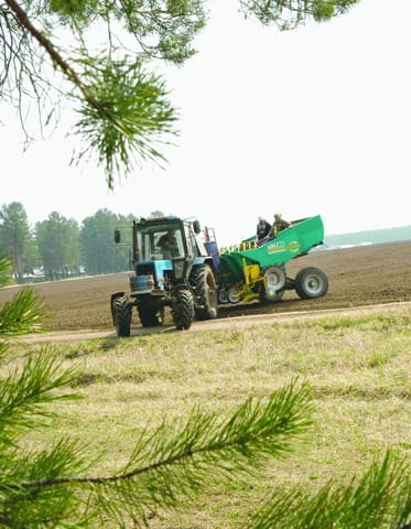 Поля, которыми мы ехали с директором, давно знакомы. Холмы, увалы, тяжёлые суглинки, перелески и даже сосновые боры. Кажется, многое знаю, но что это? Навстречу идёт агрегат из нескольких сеялок, за ним – другой. На сеялках запылённые сеяльщики. Есть же ресурсосберегающие технологии. Они позволяют, используя один проход трактора с агрегатом, выполнить несколько операций, благодаря чему сокращается количество используемых тракторов, другой техники, а также обслуживающего персонала.