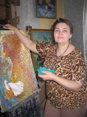 В художники она подалась не сразу. Ей нравилась и химия, и биология. Могла выбрать любой вуз – аттестат прекрасный, с пятёрками. Даже о профессии ветеринара подумывала. До сих пор любовь к братьям нашим меньшим живёт в ней – в мастерской есть и собачонка, и кошка. Именно Кыша и стала героиней её «фиолетового» опуса «Кошка-бабочка».