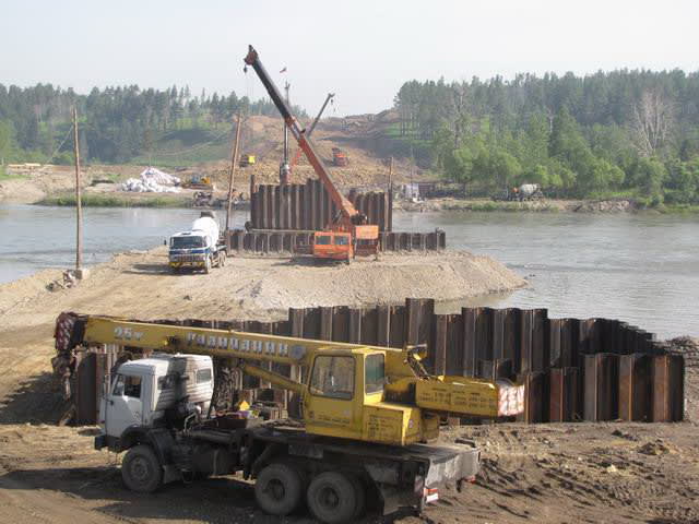 Прилично развернулись специалисты Улан-Удэнского МО-34 и на 300-метровом мосту через Иркут. На правом берегу возведена первая из шести опор, на двух последующих бетонируются ростверки, осталось забурить столбы под три опоры. На накаточных путях собран и первый пролёт. В июле мостовики планируют смонтировать ещё один, а также забетонировать два ростверка русловых опор.