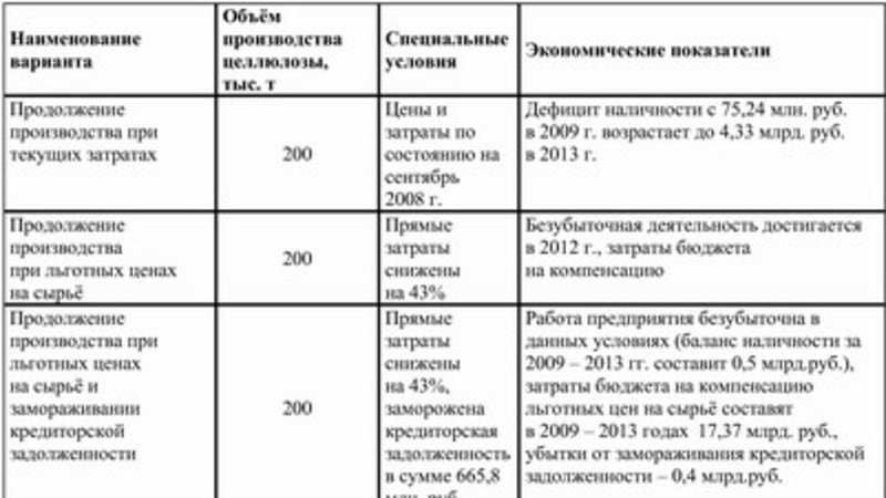 В отличие от КМ, научный совет Сибирского отделения РАН по проблемам озера Байкал подсчитал экономический эффект в случае возобновления производства на комбинате ещё в начале этого года. Согласно оценкам учёных, все варианты запуска в замкнутом цикле оказались крайне затратными. При выпуске 200 тыс. тонн целлюлозы и продаже этого объёма по ценам конца прошлого года дефицит средств БЦБК вырастет к 2013 году до 4,33 млрд. рублей. Если комбинату обеспечат льготные цены на сырьё, то к 2012 году БЦБК достигнет безубыточности, а бюджетные затраты на компенсацию льготных цен на сырьё составят в 2009–2013 годах 17,37 млрд. рублей. Увеличение объёмов производства на 120 тыс. тонн тоже малоэффективно. В этом случае бюджетные затраты на компенсацию льготных цен и различные субсидии всё равно превысят доход предприятия.
