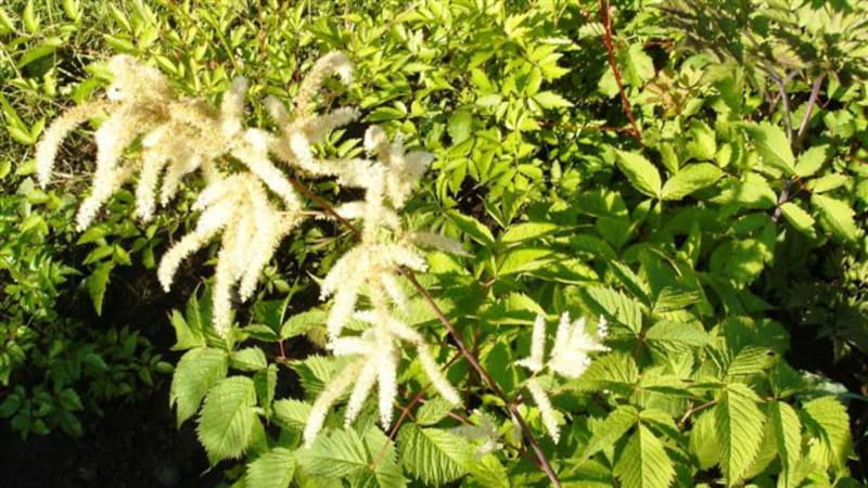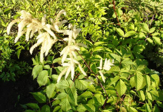 Волжанка (Aruncus) получила своё название от греческого arunkos («козлиная борода») за внешний вид соцветий. Откуда произошло русское название растения, мне узнать не удалось – нет ни в одном из моих многочисленных справочников и энциклопедий. В культуре используются три вида, два из которых распространены на Дальнем Востоке, Камчатке и в Северо-Восточном Китае. В литературе есть сведения, что арункус азиатский встречается в Восточной Сибири. Многолетние травянистые растения высотой более метра с метельчатыми раскидистыми соцветиями длиной от 15 до 60 см декоративны в течение всего сезона с весны до осени. Имеется гибридная альпийская форма до 30 см высотой. Цветение – с начала июля в течение месяца. Лучше растёт в полутени на плодородной и увлажнённой почве, очень отзывчиво растение на внесение органики. Волжанки разрастаются очень медленно и на одном месте могут расти двадцать и более лет. С возрастом растение становится всё более декоративным. Но при необходимости размножить, делить куст следует на пятый год ранней весной или осенью. Более взрослые кусты выкапывать и делить очень трудно. Посадочная ямка 30х30х40 должна быть хорошо заправлена перегноем, после посадки волжанка нуждается в обильном поливе.