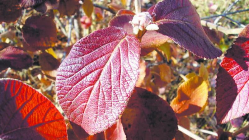 У меня в саду есть три вида калины. Уже много лет роскошно цветёт и плодоносит  калина красная, перенесённая из поймы Китоя (фото 1).  Есть и  калина гордовина – один из лучших декоративных кустарников,  красочный в течение всего сезона, от весны до поздней осени. Молодые листья бело-войлочные,  затем распускаются плотные морщинистые овальные листья, сверху зелёные, а снизу бело-войлочные.  Зонтики мелких белых цветков венчают верхушки ветвей в июне в течение трёх недель, завязавшиеся плоды сначала имеют зелёный цвет, перед созреванием красный, а после созревания чёрный. К сожалению, плоды съедобны только для птичек – сухие костянки безвкусны, но очень украшают куст. Лучшим украшением осенью долго является неопадающая листва бронзово-красного цвета (фото 2). Калина гордовина родом из Средней и Южной Европы, встречается в Северной Африке и на Северном Кавказе, но эта южанка прекрасно чувствует себя в нашем климате и  за 10 лет из тонкого прутика выросла в роскошный куст высотой 2,5 м (в справочнике указывается высота до 5 м), но плоды-костянки вызревают до чёрного цвета не каждый год.