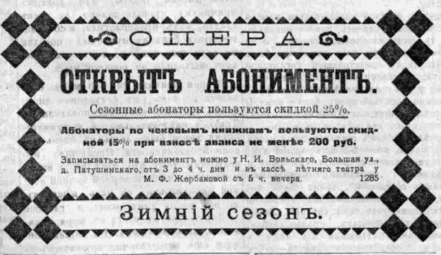 В сезон 1898-1899 гг. в городском театре было поставлено 188 спектаклей, из которых 88 – оперных. Следующий год стал собственно оперным: антрепренёр Кравченко набрал в Петербурге и Москве специальную труппу. В первоклассных иркутских гостиницах заиграли первоклассные же оркестры. А в иркутских гостиных блистали не уступавшие профессионалам любители: виолончелист Нигоф, пианистка Кнауф-Каминская, певец Ивашкевич и др. Европейские музыканты, отправляясь в Японию и Китай, знали, что в Иркутске их ждёт благодарная публика, способная вместе с букетом цветов поднести и брошь с бриллиантами.