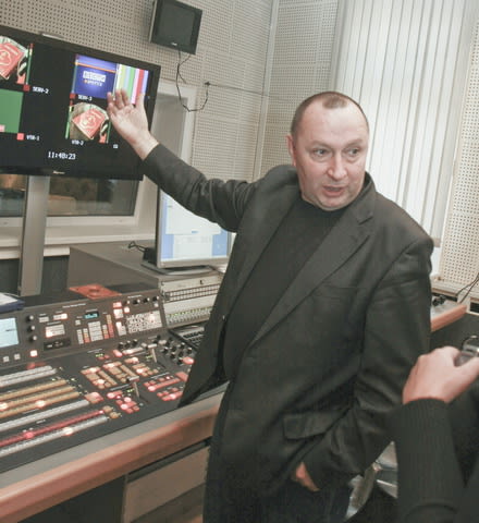 «Это аппаратура, которую мы получили. Это пять камер, пять мониторов. Там сзади звуковой пульт. На нём можно симфонический оркестр записывать. Это наша серверная. Студия у нас пока в процессе отладки», – показывает и объясняет Леонид Гунин. И если в своём кабинете глава компании на вопрос «Будут ли появляться теперь на ИГТРК новые программы?» уклончиво сообщил: «Надеюсь, что будут», то в обновлённой студии наш визави позволил себе большее: «Пока здесь записываются только новости, но у нас есть задумка сделать универсальную студию. Я мечтаю возродить ток-шоу «НКВД» – «Народный комментарий внутренних дел». Эта передача выходила в прямом эфире до 2003 года».