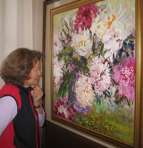 И нынешняя экспозиция – ещё одно свидетельство обожания и преклонения художника перед этим чудом природы. Экспрессивная, радостная живопись представленных на выставке работ выражается буйством и ликованием красоты, сочными размашистыми мазками, пластичностью фактуры. Так и хочется, по признанию одной из посетительниц, дотронуться до царственных букетов, ощутить их несравненный аромат, взять и прижать к сердцу.