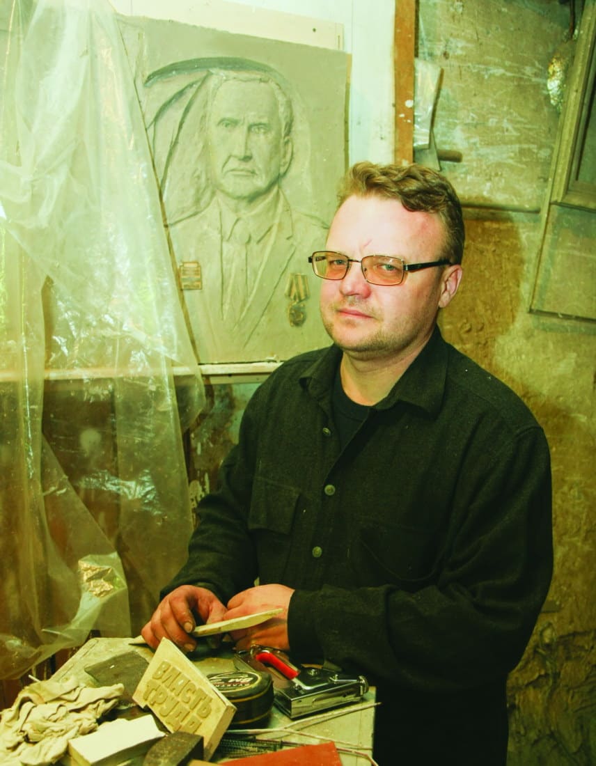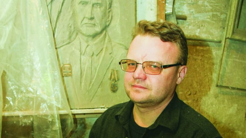 По технологии мемориальная доска сначала выполняется в оригинале из глины. Затем с неё снимается гипсовая отливка, и лишь потом в гипсовую форму заливают полимерную смесь. Сейчас скульптор «освобождает» отлитую доску из гипсового плена. С каждым движением рук мастера появляются детали – газетный лист, логотип «Власти труда», лицо Ржанова…
