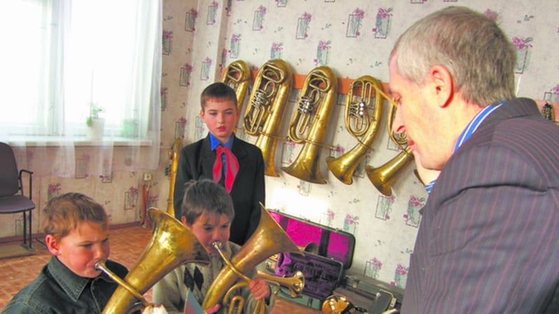 В. Крыжникова и подбросила хорошую идею: в Раздолье есть комплект духовых инструментов, а музыкантов там нет – забирай. Малышев поехал к директору ДК в Раздолье, та показала инструменты, которые висели у неё в кладовой аж с 1973 года, на них никто никогда не играл, словно все 27 лет дожидались тайтурского дирижёра. Хозяйственная раздольская директорша сохранила всё как положено – в чехлах, футлярах. Только от старости зелёный налёт на духовых появился, там сплав меди с латунью, неудивительно. Словом, счастливые обладатели комплекта медных духовых ещё два месяца чистили свои сокровища, на которых они играют и сегодня. Справедливости ради отмечу: не все инструменты у Малышева такие древние. Года четыре назад приезжала в тайтурский ДК руководитель департамента культуры области Вера Кутищева. Посмотрела, на чём играют здесь дети, и выделила юным музыкантам сто тысяч рублей. Денег хватило как раз на три фабричные китайские трубы, неплохую ударную установку и хороший японский тромбон «Ямаха». Все остальные инструменты у Малышева по-прежнему со времён царя Гороха.
