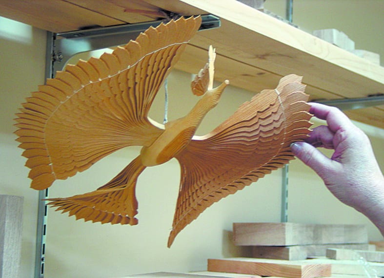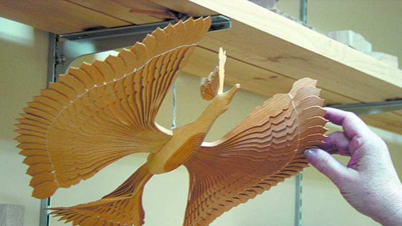 Как и в прошлый мой визит, она вновь взяла на себя роль гида. Только на сей раз не озабоченность я читаю на её лице, а чувство удовлетворённости от хорошо сделанной работы. Мы переходим из помещения в помещение. Их немного: мастерские – по работе с керамикой, резьбе по дереву, ювелирная, выставочный зал, где расположены и владения «Оникса». И всюду – стеллажи и витрины, наглядно демонстрирующие многообразие талантов, самобытность и оригинальность творческих пристрастий. Глаз не оторвать от ювелирных изделий, от поделок из дерева, бересты. Свою бесподобную «Птицу счастья» иркутский умелец Виктор Ирбулатов смастерил аж из щепы. Без преувеличения, это как музыка – столько благозвучия и красоты в работе мастера. А резные пасхальные яйца, изделия из берёзового капа! Я уж не говорю о туесах, вышивках, кружевах мастериц из «Оникса».