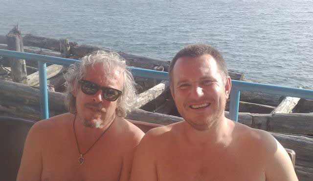 Копаясь в телефоне, он вдруг засмеялся и продемонстрировал фото: там он и Андрей Макаревич, оба голые по пояс, улыбаются в объектив, сидя за столом на палубе яхты.
