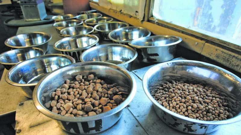 Мы разговариваем и попеременно треплем Рэмми. Ей единственной разрешено жить там, где остальные едят. Вернее, здесь только насыпают собакам корм. Суточная норма – 88 рублей, а количество пищи зависит от цены. Получается около 770 граммов качественного сухого корма, хотя для каждого питомца предусмотрено индивидуальное количество. «Каждый месяц провожу контрольное взвешивание. Если вес собаки не соответствует норме, организовываем дополнительную подкормку либо, наоборот, снижаем норму. В любом случае в день на всех уходит по большому мешку корма – около 14 килограммов», – рассказал Вадим. Суточную порцию проводник насыпает в именные миски. Из чужой тарелки здесь не каждый согласится есть – чужой запах, а всё чужое здесь и правда не любят.