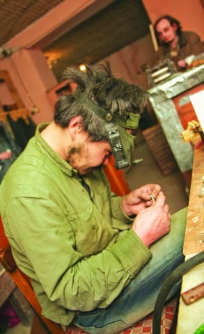 Диктофон мы не убрали. Но нам всё равно всё рассказали. Здесь есть цеха со станками по дереву и по металлу, цех, где реставрируют иконы, место, где идёт золочение. Мы проходим в мастерскую. Один человек в робе склонился над заготовками для колец. «А это вот солнышко, – улыбается нам столяр-плотник Александр. И показывает на стол, где и правда – деревянное солнышко. – Будет золоточиться». Он так и говорит: «золоточиться». «Тут мастера, конечно, от Бога», – сообщает девушка-юрист. В соседнем цехе пусто – на стенах прикрытые иконы. «Здесь работают в основном по ночам, – говорит Сократ Кулик. – Потому что боговерующие люди любят работать по ночам. Молятся и работают, а днём спят». Точное число работающих никто назвать не смог – много приходящих.