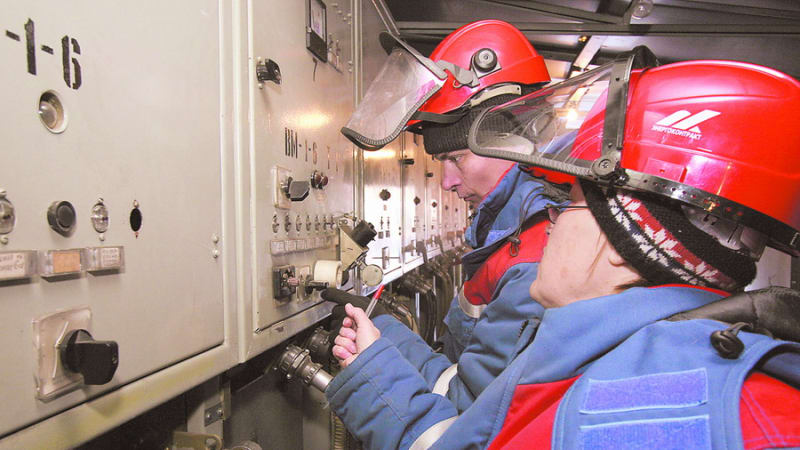 «Мы работаем по бланкам переключений, – рассказала старший электромонтёр оперативной бригады по подстанциям Мария Никитина, войдя в КРУН – комплектное распределительное устройство, где расположены специальные ячейки и выключатели. – О каждом своём действии обязательно докладываем диспетчеру. А каждый наш шаг зафиксирован в специальном журнале». Все работы ведутся в соответствии с требованиями техники безопасности: электромонтёр-водитель и старший электромонтёр оперативной бригады одеты в специальные огнестойкие костюмы, на головах каски с козырьком, защищающим от электрической дуги, на руках – специальные перчатки.