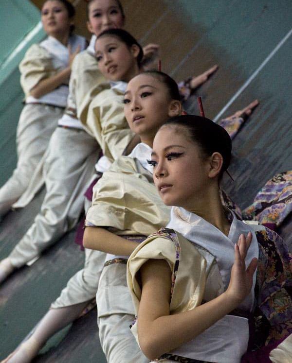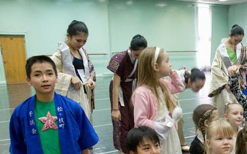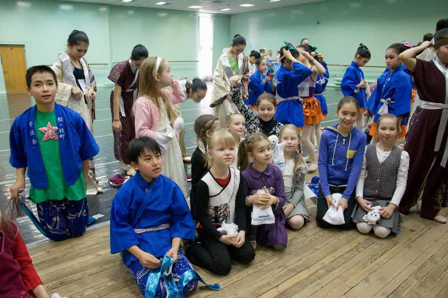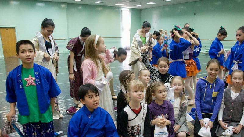 После мастер-класса японские ребята увидели русский танец из «Лебединого озера» и фрагмент из балета «Эсмеральда», а наши – японский балет в национальных костюмах кимоно с веерами.
