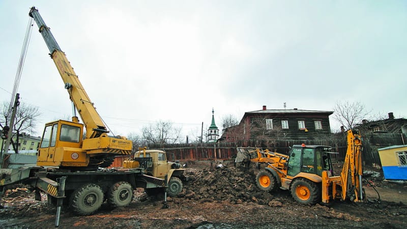 – Мы купили этот участок с домом № 13 два года назад, дом снесли и собирались тут поставить гаражи, но когда губернатор объявил об историческом квартале, наш проект «зарубили», – рассказал директор предприятия Александр Герьятович, наблюдая, как сиреневый экскаватор расчищает пространство под будущее строительство. – Теперь мы вроде как инвесторы. С нами работает «Иркутскгражданпроект», всё официально. По проекту, здесь (мужчина указывал на пустырь, заваленный мусором, посреди которого стоит одинокий туалет) будет стоянка на 150 парковочных мест, рядом – гостиничный комплекс под старину, инвестором которого выступает Росбанк, дальше – кафе, ресторан.