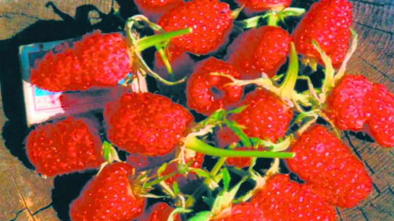 В общих чертах все эти сорта схожи между собой, хотя в каких-то нюансах и разнятся. Главное – сказка, которую обещали, стала реальностью. Это и красивые кусты, и «сногсшибательные» ягоды (4-5 см в длину и массой значительно больше 10 г), огромный урожай почти от основания куста до макушки, густой малиновый аромат. Ягоды красивой овальной удлинённо-конической формы, плотные, сладкие, с хорошо сцепленными мягкими костянками, легко снимаются с цветоложа и в то же время самовольно не покидают его. Ягоды на нижних латералах созревают позже, и они крупнее по размеру. Все чистые, без изъянов, подгниваний и какой-либо порчи.