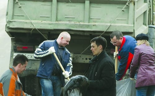 Первым, что бросилось в глаза прибывшему на место уборки корреспонденту «Сибирского энергетика», были чёрные полиэтиленовые мешки с мусором, аккуратным рядком уложенные вдоль дороги, ведущей от автобусной остановки до Ново-Иркутской ТЭЦ. И люди, в большинстве своём одетые в спецовки с надписью «Иркутскэнерго», которые складывали эти мешки в грузовики с логотипом компании. Как объяснила впоследствии начальник административно-хозяйственного отдела Ново-Иркутской ТЭЦ Вера Игнатенко, на субботник вышли более 30 сотрудников Иркутской энергосбытовой компании, за которыми закреплена территория вблизи ТЭЦ. А в помощь им дали два грузовика – «МАЗ» с полуприцепом и самосвал «КамАЗ».