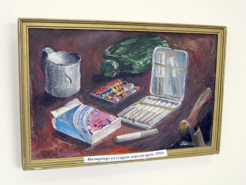 – На этой картине моя внучка Гуля, – поясняет он. – Мне очень нравится её рисовать. Здесь она получилась как статуэточка. Вот портрет ветерана, моего отца. А на этой картине его любимые вещи: портсигар и папиросы «Беломор». Я коллекционирую отзывы о своих работах. И однажды женщина мне написала очень интересный комментарий: «Что же вы пропагандируете курение?». Разве я его пропагандирую? Я нарисовал свои воспоминания, тогда на фронте все курили. Как сейчас помню: отец, когда покупал новую пачку папирос, разбирал их и одну к другой аккуратно складывал в дюралевый портсигар.
