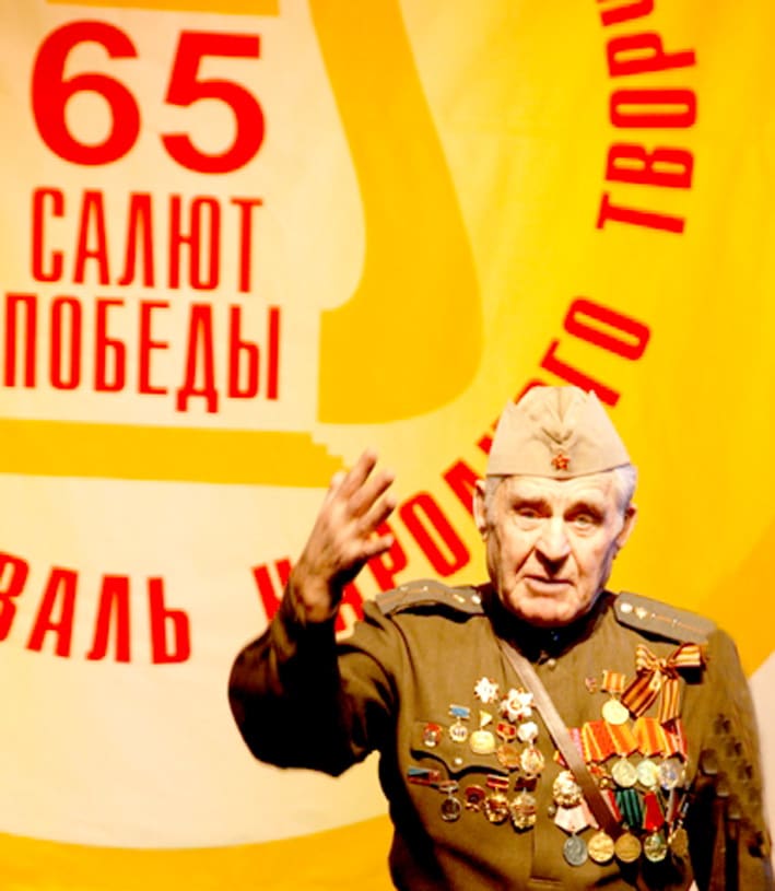 Николая Петровича в сутолоке приготовлений к заключительному концерту областного фестиваля «Не стареют душой ветераны» во Дворце культуры имени Гагарина найти было нетрудно. Военная выправка, гимнастёрка и галифе военных лет, офицерская планшетка на боку и – грудь в орденах и медалях. Ну где ещё встретишь такого? Он шёл по коридору, немного прихрамывая – ранение 1943 года снова давало о себе знать. Позднее, открывая концерт стихами о сибиряках – Героях Советского Союза, он выйдет на сцену без тросточки, и зал обрушит на него шквал аплодисментов.