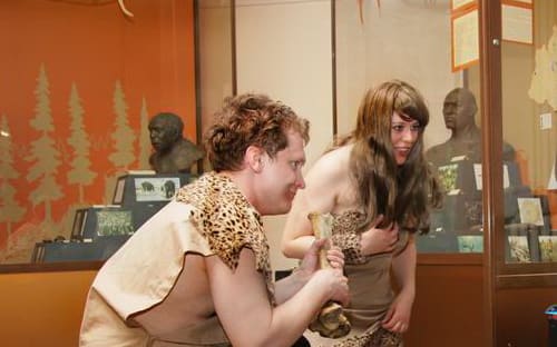Концепцию придумали за месяц до самой акции. Она была простой и зрелищной одновременно – решили «оживить» экспозицию, то есть привязать театрализованное действие «к витринам». У экспозиции археологических артефактов сидели у костра пещерные люди в шкурах, шаманка около выставки бурятского фольклора символизировала коренные народности Прибайкалья, две институтки повествовали об образовании позапрошлого века, а губернатор «задвигал» что-то про политику партии на переломе веков – XIX и XX.