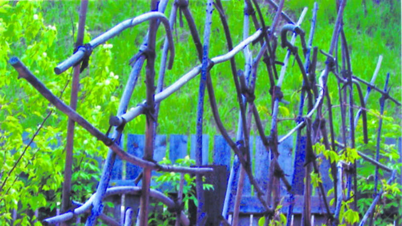 Если вы решились сделать подобное устройство для своих вьющихся питомцев, тогда начните с заготовки ивовых веток. Советую их подбирать в загущённом ивняке. В таких местах они представлены длинными, прямыми, без излишних разветвлений ветвями, диаметр нарезаемых ветвей в комлевой их части должен быть 2–2,5 см. Помимо тонких веток вам понадобятся и несколько толстых с диаметром комля 4–5 см. Последние будут необходимы в качестве опорных стоек будущего каркаса. После нарезки ветвей приступайте к их «ошкуриванию». При этом снятую кору не выбрасывайте. Она вам пригодится в дальнейшем для маскировки крепёжных гвоздей и проволочных стяжек.