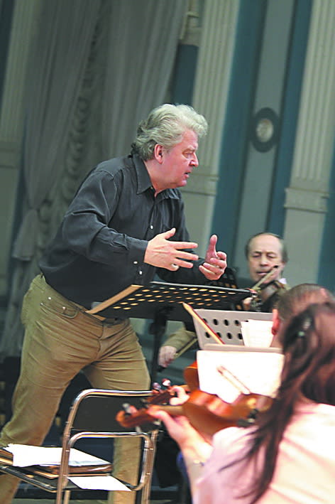 Сказать, что во время появления перед оркестром Илмара Лапиньша в зале воцарилась тишина, было бы неправдой. В оркестровой яме просто очень убавился звук. Зато когда дирижёр объявил название первой композиции для репетиции и взмахнул руками, какофония преобразовалась в музыку.
