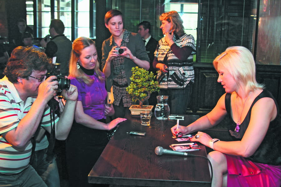 Вокруг Рагозиной трещали затворы фотоаппаратов, выстраивалась очередь за автографом. Абсолютная чемпионка не отказала никому из желающих получить её роспись на память. Параллельно она представила прессе книгу «Нокаут от блондинки», в которой о ней рассказывают тренеры, коллеги по рингу, друзья и сама Рагозина.