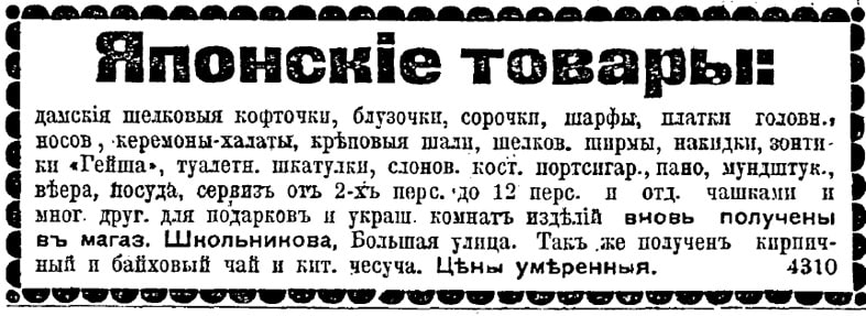 Что там было в действительности, сказать трудно, и читатель ещё только задумывался об этом, а Дубровский уже отрезал всякий путь к отступлению, размещая новое объявление. «К сведению любителей хорошей крупчатки. Сим извещаю, что Ново-Николаевское мукомольное товарищество и К0 передало мне на комиссию ихнюю крупчатку одинаковыми ценами с ними. О превосходном качестве этой крупчатки масса лестных отзывов, оправдывающих её превосходное качество. Покорнейше прошу господ посетителей посетить мою лавку, находящуюся на Хлебном базаре, тел. № 554. Пятипудовые кули в предместья города доставляются на дом бесплатно. Кроме крупчатки имеется чай кирпичный, сахар, масло, мука ржаная и пшеничная. Овёс, крупы разные».