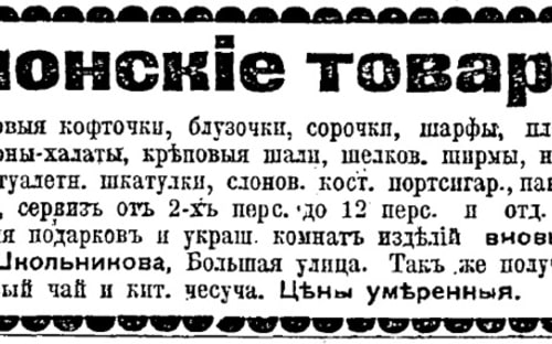 То было «коммерческое» предложение некоего «предъявителя квитанции № 4224» предоставить ему капитал в 10–20 тысяч рублей – взамен на обещание «монопольного права продажи заграничных первоклассных фабрикатов, имеющих в Сибири самое широкое поле сбыта». Публикация этого объявления почти совпала с другой, приглашавшей на «иллюзиомедиумическое представление» в театр Общества по распространению народного образования. Сам выбор площадки для выступления говорил, что артисты не претендуют ни на сцену городского театра, ни на сцену Общественного собрания, и всего вероятнее, что они привезли зауряднейший балаган. Но билеты при этом предлагались весьма и весьма дорогие – до четырёх рублей за место.