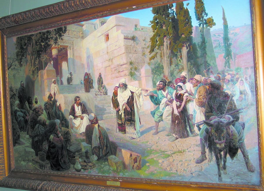 Поленов подошёл к сюжету и его религиозному содержанию совершенно по-новому. Художник изобразил легендарный евангельский рассказ как живую, реальную сцену благодаря великолепному пейзажу. Особенно величественны кипарисы в лучах вечернего солнца на фоне стен Иерусалимского храма. В поисках достоверности Поленов предпринимает путешествие в Палестину, Египет и Грецию. Его этюды, передающие яркие, чистые краски Востока, произвели настоящий переворот в русской живописи. В нашем музее представлены два пейзажа из этой поездки: «Гробница Рахили» (памятник VII в., находящийся по дороге в Вифлеем) и «Тивериада» (город на берегу Тивериадского озера). В них Поленов выступает как первоклассный мастер законченного, отработанного этюда с натуры. Поражает свобода и непосредственность овладения мотивами природы чужих стран.
