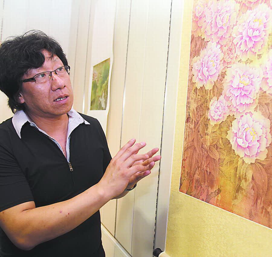 Как только я спросила о технике, господин Цай Лунь тут же перепоручил меня Ван Чжувею. Он рассказал, что в Иркутск пока привезли только национальные работы. Зрителя надо готовить. Современное искусство придётся «отбирать, обсуждать, много общаться», говорит Чжувей. «В этот раз показываем нашу национальную идею, – сказал он и бережно провёл ладонью по картине в миллиметре от поверхности бумаги. – Это принадлежит восточной философии». На картине – розовые хризантемы, лист рисовой бумаги «одет» в рамку из золотистого шёлка. От этого хризантемы светятся, как на закате. А может быть, это от специальной приглушенной подсветки выставки, которую помогали монтировать иркутские художники. «Это китайская традиционная картина. Значит, очень зящна…– переводит жена Цай Луня, потом задумывается и говорит: – Изящна… Изящная. То есть изящное искусство, чистое ремесло. Тоненькими-тоненькими кистями и тушью рисуют. Наши древние художник делали так – рисовали на бумаге, а потом специальную упаковку в шёлке». Хризантема – символ осени и возвышенного одиночества. Одно из «четырёх благородных» растений в системе китайской живописи гохуа. Вместе с бамбуком, орхидеей и дикой сливой.