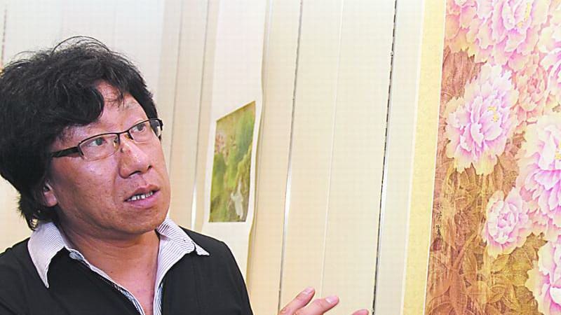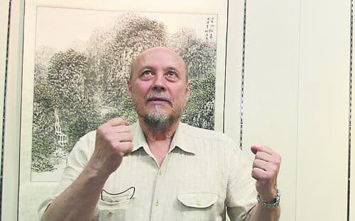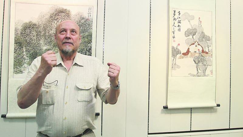 «Вот вы видите – на картине цветы, – говорит переводчица и делает плавное движение рукой сверху вниз по полотну. – Сначала рисуют один ярус, потом второй ярус». Она говорит о слоях акварели. Такую работу обычно выполняют около двух месяцев. Господин Ван указывает на другую стену, где на огромном листе тушью нарисован пейзаж с деревом и убегающими в бесконечность домиками. «А вот это абстрактный тип работы, – говорит он. – Как художник думает, так и пишет. Эта картина сразу показывает всего художника. И делается за несколько минут». А вот для картины с хризантемами такая быстрота – неверный метод. «Есть цветок, есть модель, какой он растёт, так и рисуешь. Понимаешь меня?». На глупую мою реплику: «Так модель за два месяца завянет», – он терпеливо отвечает: «В мозге хранится! Так всегда – художник должен воспитать себя, уметь держать себя и терпеть. Понимаешь? Почему так долго, два месяца он рисовал? Потому что приятную вещь каждый день хочется собирать в душу».