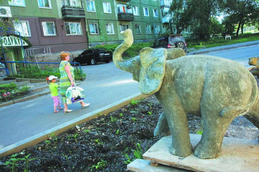 – Мы можем сделать любую скульптуру на заказ. Хоть в несколько этажей высотой. Никому не надо… Тут недавно были какие-то начальники из властей города. Я предложил: давайте на фонтане, который около «Баргузина», поставим на четырёх углах по слону, чтобы они воду струёй лили в чашу. Отказались. Сказали: «Идея хорошая, но денег нет».