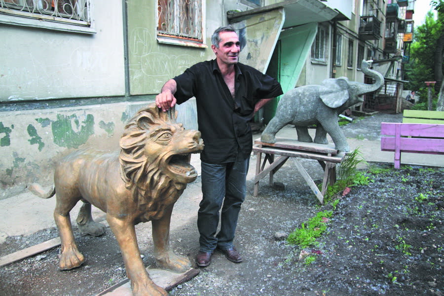 – Мне позвонил Эмиль и сказал: «Вачаган, приезжай, льва уронили», – рассказывает второй скульптор. – Какие-то идиоты, пьяные или наркоманы, человека четыре, ночью шли мимо, стали бить льва, выбили ему клыки, повалили, сломали лапу и хвост. Зачем?! Чтобы в городе вообще ничего красивого не было? Не понимаю!