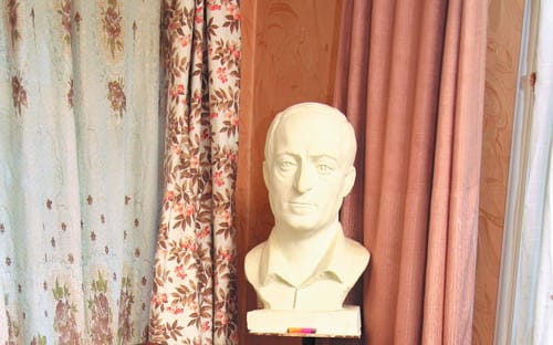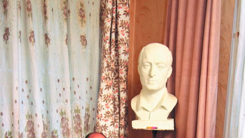– Скульптуру делали из крошки белого мрамора и белого цемента. Чтобы она была полегче, Эмиль в  голову вставил пластиковую бутылку с водой. Зима, холодно – бутылка замёрзла и взорвалась! Голова треснула пополам от уха до уха, пришлось её затащить в квартиру и реставрировать. Я много чего изменил сам, своими руками – Эмиль брови мне не так сделал и нос слишком длинный, я его обрезал потом. Я ведь своё лицо лучше знаю!