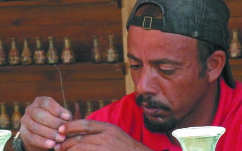 Фирменный сувенир – бутылочка с разноцветным песком, из которого мастер может выписать изысканный орнамент
