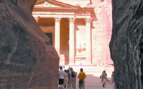 Плотность археологического, природного и культурного наследия этого молодого государства, получившего независимость только в 1946 году, настолько высока, что просто диву даёшься, как с этим всем можно справиться. Иорданцы справляются, как могут. Здесь по-родственному привлекают инвестиции. Известно, что основные вложения на иорданском берегу Красного моря принадлежат наследному принцу эмирата Дубай шейху Мухаммеду бен Рашид Аль Мактуму, женившемуся несколько лет назад на сестре короля Иордании. Именно поэтому на строительстве отелей в Акабе финансовый кризис не сказался. Здесь прокладывают хорошие дороги, по пустыне тянут водопроводы, линии электропередачи. Среди бескрайних песков открывают кемпинги, где в палатках есть санузел и душ с горячей водой. В Джераше (говорят, что для римских воинов этот город был всё равно что для современных американцев Лас-Вегас) вас обязательно начнут зазывать на шоу гладиаторов. Это самодеятельные артисты при поддержке муниципалитета решают вопрос занятости. Сегодня трудно представить, что как туристический комплекс всемирно известная Петра существует совсем недавно. В 1985 году в высеченных в скалах домах ещё жили представители племени бдул. Те долго не хотели выезжать в специально построенный для них посёлок. И согласились это сделать только на условиях, что за ними будет закреплено право вести бизнес на территории Петры. Государство пошло на это. Теперь бедуины Петры торгуют сувенирами, продают кофе, сдают в аренду осликов и верблюдов, а также могут организовать для вас индивидуальный тур по окрестностям. «Организуем для вас всё, что угодно! Кроме бассейна! – обещает один из таких туроператоров. – Знаю, русские любят бассейн».