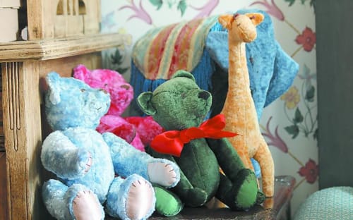 Она берёт в руки зелёного мишку с забавными длинными передними лапами: «Этот сделан по штайффовской выкройке, эти мишки были самыми первыми. Они вот такие немного смешные, но очень характерные». Штайффовский мишка – это мишка, сшитый по выкройкам знаменитой игрушечной фабрики Маргарет Штайфф.
