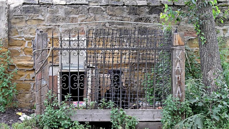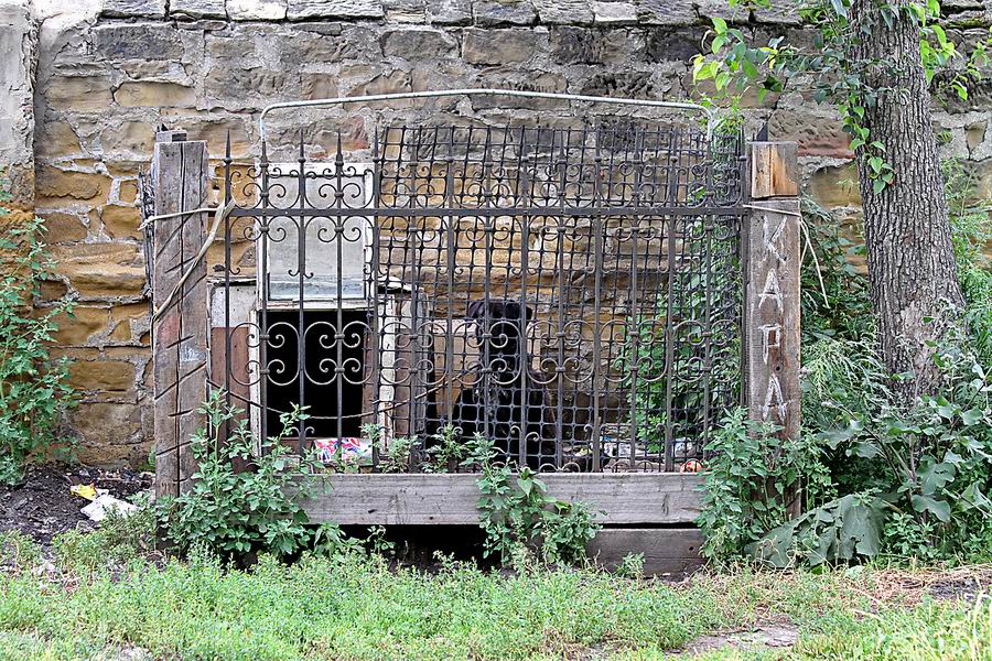 Ночью еврейское кладбище охраняет здоровенный «кавказец». Днём, чтобы не пугать посетителей, – более тщедушный и миролюбивый Кара – в надёжной клетке из отработавших своё могильных оград