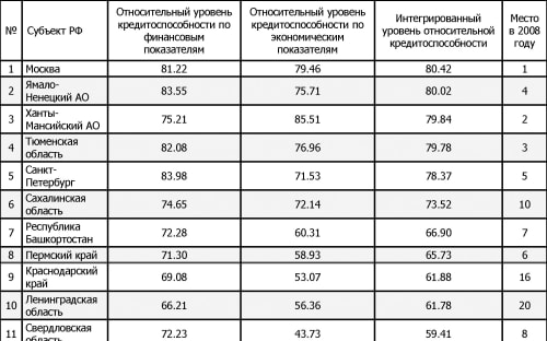 РБК-рейтинг опубликовало на прошлой неделе рейтинг кредитоспособности российских регионов. Он базируется на данных исследования агентства AK&M. Экспертами оценивались относительные возможности субъектов Российской Федерации по выполнению долговых обязательств. В рамках исследования проводился анализ показателей 81 субъекта РФ за 2009 год.