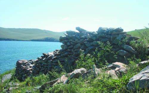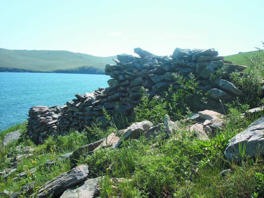 Нам остались городища. На Малом море, Ольхоне их масса. Помимо каменных, ещё и земляные. И археологи не могут сказать точно, было ли это укреплённым сооружением или святилищем. И когда многие из них были созданы – в эпоху так называемых «курыкан» или позже. Артур Харинский пришёл к выводу, что эти городища были, скорее, святилищами, чем оборонительными сооружениями. И, в общем, с ним многие соглашаются. Сейчас и в специальной литературе их так и называют: «городища-святилища». Всё дело в том, что внутри, за этими стенами, практически нет никакого культурного слоя. Нет находок. Везде всё одинаково – есть красивая стена или красивый земляной вал со рвами, площадки. А когда археологи начинают закладывать раскопы – нет практически ничего. Напрашивается логичный вывод – это были святилища. Строились они, как предполагают археологи, в соответствии с трёхчастным делением мира на верхний, средний, нижний, на высоких горах или мысах – чтобы к небу поближе. А вал, или ров, или стена нужны были, скорее всего, чтобы оградить эту сакральную территорию от злых духов. Археологам часто приходится повторять слова «скорее всего», «вероятно». Нет достаточных доказательств, что точно было святилище. Область научной фантастики.