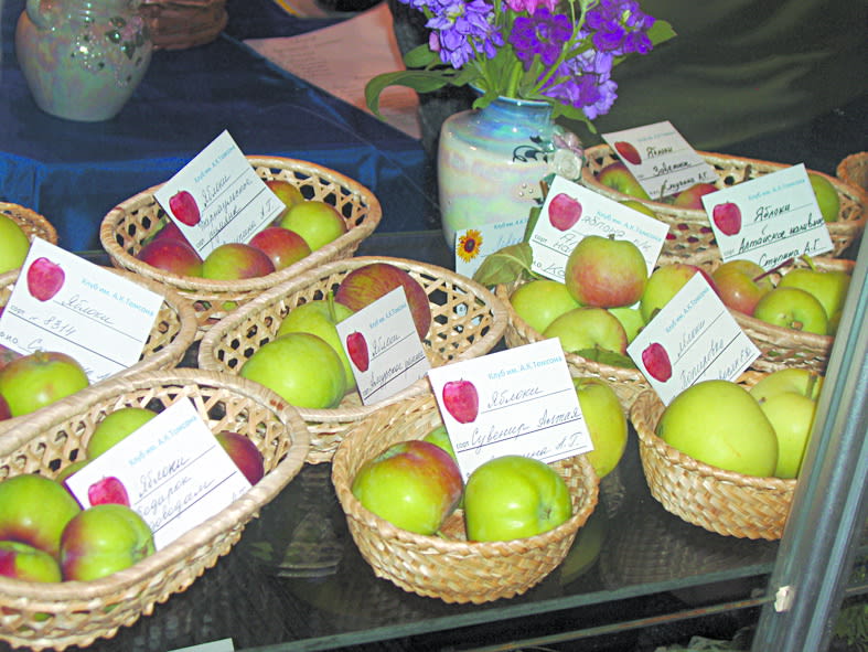 Старейший Иркутский клуб садоводов-опытников им. А.К. Томсона постарался как всегда показать свою разносторонность: овощи – весь набор выращиваемых видов; фрукты – также весь комплект. Только яблок было представлено более 20 сортов; груши, сливы, вишни и даже абрикосы, а ягод – десятки сортов. Большая часть яблок, например, из сада Анны Григорьевны Ступиной. Она испытывает новые алтайские сорта и распространяет среди садоводов. Многие из них подмёрзли этой суровой зимой, но значительная часть сохранилась и дала неплохой урожай.