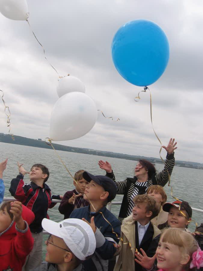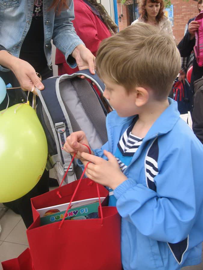 Что касается самих детей, они веселились вовсю. При взгляде на них вспомнилось, как я ждала линейку в первом классе, проверяла без конца все свои школьные принадлежности, перебирала их, рассматривала. Как тогда хотелось поскорее начать всем этим пользоваться! А переживания по поводу будущих оценок, школьной формы и новых знакомств… О новых друзьях мечтает Любченко Андрей. В первый класс мальчик идёт с большим желанием учиться, но говорит, что не будет обещать учиться только на одни пятёрки и так же, как и его старший брат, будет иногда (и только иногда!) приносить домой двойки. Маленькому Андрюше очень понравился праздник, но особенно его впечатлила прогулка на теплоходе. Он не рассказывает, какое желание загадал, когда отпускал в небо шарик, но очень надеется, что оно сбудется в ближайшее время.