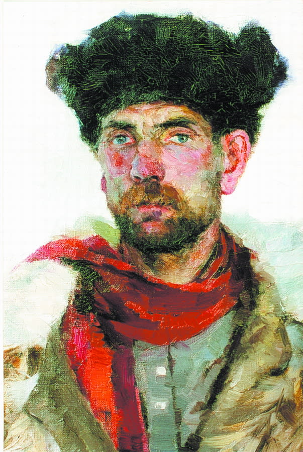 Дарование Петра Турчанинова стремительно раскрывалось как в живописи, так и в рисунке и композиции. Ещё будучи студентом, он стал принимать участие в профессиональных выставках иркутских художников, а его дипломная работа произвела настоящий фурор в творческой среде. Даже ранние работы художника покоряют своей зрелостью. Например, портрет сибиряка выполнен в лучших традициях русского реалистического искусства. В нём ощущаются демократические тенденции, присущие полотнам художников-передвижников, а по глубине психологической характеристики его можно сравнить с картинами В.И. Сурикова. Портрет интересно оранжирован по цвету. Благородный серебристо-серый колорит картины оживляет ярко-красное пятно шарфа. Мастерски широким мазком написана бело-охристая собачья шуба.