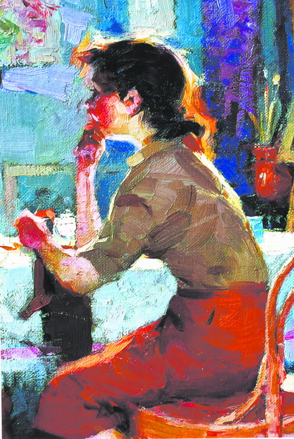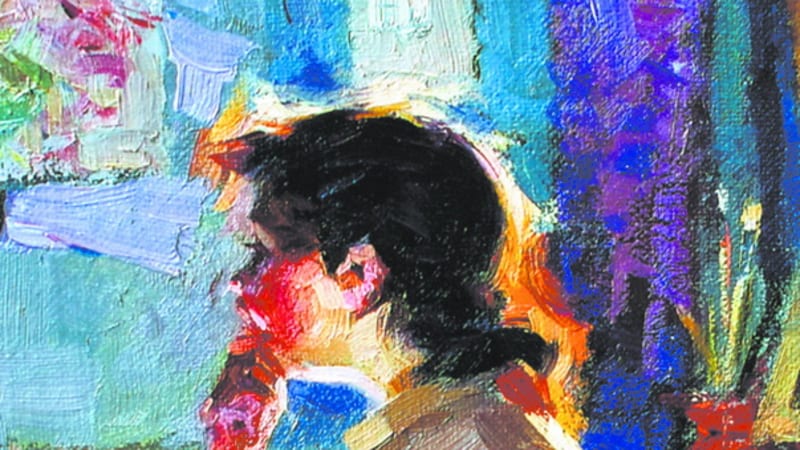 Радостью жизни пронизан портрет девушки, освещённой солнцем. Смело и уверенно крупной кистью вылеплены складки белой одежды на свету и лицо под тенью кокетливой шляпки. Здесь от сложного серебристого колорита художник переходит к ярким, почти открытым цветам: зелёная трава, камни у воды – всё это передаёт атмосферу короткого знойного сибирского лета. Именно в этот период закладывается мастерство сюжетной композиции и пейзажного этюда, которые Турчанинов будет продолжать все последующие годы.